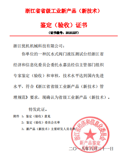 省級(jí)工業(yè)新產(chǎn)品鑒定證書(shū)
